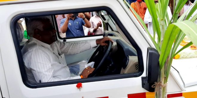 ತುರ್ತು ವಾಹನ ಓಡಿಸಿದ ರಾಜ್ಯಸಭಾ ಸದಸ್ಯ ಈರಣ್ಣ ಕಡಾಡಿ.