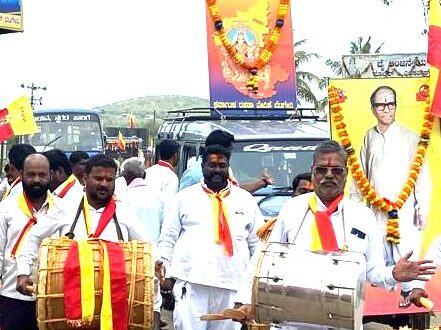 ಬೆಟಗೇರಿ:ಗೋಕಾಕ ತಾಲೂಕಿನ ಬೆಟಗೇರಿ ಗ್ರಾಮದಲ್ಲಿ ನ.1ರಂದು ನಡೆದ 70ನೇ ಕನ್ನಡ ರಾಜ್ಯೋತ್ಸವ ದಿನಾಚರಣೆ ಪ್ರಯುಕ್ತ ಗ್ರಾಮದ ಪ್ರಮುಖ ಬೀದಿಗಳಲ್ಲಿ ಹಮ್ಮಿಕೊಂಡ ಭುವನೇಶ್ವರಿ ಮತ್ತು ಆನಂದಕಂದರ ಭಾವ ಚಿತ್ರ ಭವ್ಯ ಮೆರವಣಿಗೆ ಕಾರ್ಯಕ್ರಮದಲ್ಲಿ ಸ್ಥಳೀಯ ಗ್ರಾಪಂ ಮಾಜಿ ಅಧ್ಯಕ್ಷ ಲಕ್ಷ್ಮಣ ಚಂದರಗಿ ಮತ್ತು ಕರವೇ ಗ್ರಾಮ ಘಟಕದ ಅಧ್ಯಕ್ಷ ಈರಣ್ಣ ಬಳಿಗಾರ ಕೆಲವು ಹೊತ್ತು ಡೊಳ್ಳು ಬಾರಿಸಿ ಎಲ್ಲರ ಗಮನ ಸೆಳೆದರು.