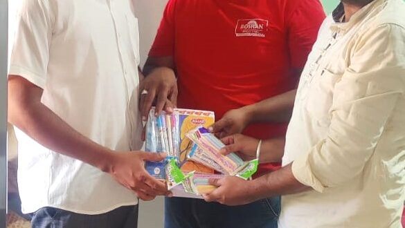 ಬೆಟಗೇರಿ:ಗೋಕಾಕ ತಾಲೂಕಿನ ಬೆಟಗೇರಿ ಗ್ರಾಮದಲ್ಲಿ ನ.1ರಂದು ನಡೆದ 70ನೇ ಕನ್ನಡ ರಾಜ್ಯೋತ್ಸವ ದಿನಾಚರಣೆ ಪ್ರಯುಕ್ತ ವಿವಿಧ ರೂಪಕಗಳ ಮೂಲಕ ಹಲವು ಮಹನ್ ವ್ಯಕ್ತಿಗಳ ವೇಷಭೂಷಣ ಧರಿಸಿದ್ದ ಸÀ್ಥಳೀಯ ಸರಕಾರಿ ಹಿರಿಯ ಪ್ರಾಥಮಿಕ ಕನ್ನಡ ಗಂಡು ಮತ್ತು ಹೆಣ್ಣು ಮಕ್ಕಳ ಶಾಲೆಯ ವಿದ್ಯಾರ್ಥಿ ಮತ್ತು ವಿದ್ಯಾರ್ಥಿನಿಯರಿಗೆ ಸುಮಾರು 86 ನೋಟ ಬುಕ್ಕ್ ಮತ್ತು ಪೆನ್ನುಗಳನ್ನು ಬೆಟಗೇರಿ ಗ್ರಾಮ ಘಟಕದ ಕರವೇ ಕಾರ್ಯಕರ್ತರು ಕಾಣಿಕೆಯಾಗಿ ನೀಡಿದರು.