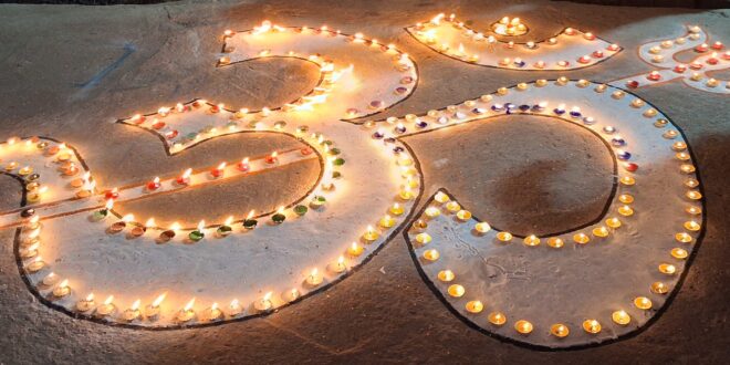 ಬೆಟಗೇರಿ: ಗೋಕಾಕ ತಾಲೂಕಿನ ಬೆಟಗೇರಿ ಗ್ರಾಮದೇವತೆ ಶ್ರೀ ದ್ಯಾಮವ್ವದೇವಿ ದೇವರ ಕಾರ್ತಿಕೋತ್ಸವ ಹಾಗೂ ವಿವಿಧ ಧಾರ್ಮಿಕ ಕಾರ್ಯಕ್ರಮದ ಪ್ರಯುಕ್ತ ಸ್ಥಳೀಯ ಗ್ರಾಮದೇವತೆ ದ್ಯಾಮವ್ವದೇವಿ ಕಾರ್ತಿಕೋತ್ಸವ ಆಚರಣಾ ಸಮಿತಿ ಪದಾಧಿಕಾರಿಗಳು, ಸದಸ್ಯರು ರಂಗೋಲಿ ಮೂಲಕ ಓಂ ಅಕ್ಷರದಲ್ಲ್ಲಿ ಶ್ರೀದೇವಿಯ ತ್ರೀಶೂಲ ಚಿತ್ರ ಬಿಡಿಸಿ, ಅದರಲ್ಲಿ ಚಿಕ್ಕ ದೀಪ ಹಚ್ಚಿ ಸಂಭ್ರಮಿಸಿದರು. ಇದು ನೋಡುಗರಲ್ಲಿ ಆಕರ್ಷಣಿಯವಾಗಿ ಕಾಣುತ್ತಿತ್ತು.