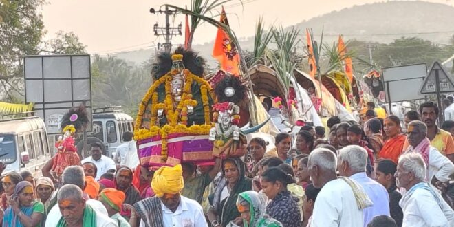 ತಲೆಯ ಮೇಲೆ ಶ್ರೀದೇವಿಯ ಜಗಹೊತ್ತು ಊಧೋ.. ಊಧೋ.. ಊಧೋ.. ಯಲ್ಲಮ್ಮ…ನಿನ್ನ ಹಾಲು… ಕೂಧೋ… ಎನ್ನುತ್ತಾ ಸಕಲ ವಾದ್ಯ ಮೇಳಗಳೊಂದಿಗೆ ಶ್ರೀದೇವಿಯ ದರ್ಶನಕ್ಕೆ ಕಾಲ್ನಡಿಗೆ ಮೂಲಕ ಫೆ.4 ರಂದು ಬುಧವಾರ ಸಂಜೆ ಪ್ರಯಾಣ ಬೆಳಸಿದರು.