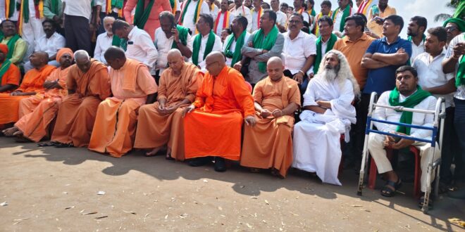ಮೂಡಲಗಿ: ಕಬ್ಬು ಬೆಳೆಗಾರರ ಹಾಗೂ ಕಾರ್ಖಾನೆಗಳ ನಡುವಿನ ಹೋರಟವಲ್ಲ, ಕೇಂದ್ರ ಮತ್ತು ರಾಜ್ಯ ಸರಕಾರಗಳು ತಾವು ತೆಗೆದುಕೊಳ್ಳುವ ತೆರಿಗೆ ಹನ ಕಡಿಮೆ ಮಾಡಿ, ರೈತರ ಬೇಡಿಕೆ ಇಡೆರಿಸಬೇಕು. ರೈತರು ಯಾವೂದೇ ಕಪ್ಪು ಚುಕ್ಕೆ ಬಾರದಂತೆ ಹೋರಾಟ ಮಾಡಿ ಎಂದು ಕೋಲಾಪೂರದ ಕನ್ನೇರಿ ಮಠದ ಕಾಡಸಿದ್ದೇಶ್ವರ ಸ್ವಾಮಿಗಳು ಹೇಳಿದರು.