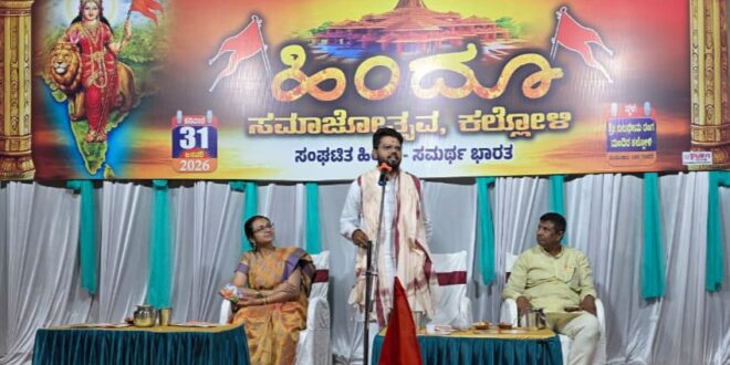 ತಾಲ್ಲೂಕಿನ ಕಲ್ಲೋಳಿಯ ಬಲಭೀಮ ರಂಗಮಂಟಪದಲ್ಲಿ ಆಯೋಜಿಸಿದ್ದ ಹಿಂದೂ ಬೃಹತ್ ಸಮಾವೇಶದ ಸಾನ್ನಿಧ್ಯವಹಿಸಿ ಮಾತನಾಡಿದ ಅವರು ದೇಶದ ಜನರ ಮನಸ್ಸು ಒಡೆಯದೇ ಮಾನವರೆಲ್ಲೂರ ಒಂದೇ ಎನ್ನುವ ಸಂದೇಶವನ್ನು ಹಿಂದೂ ಧರ್ಮ ನೀಡುತ್ತದೆ. ಪ್ರತಿ ಭಾರತೀಯನು ಹಿಂದೂ ಧರ್ಮದ ಸಂಸ್ಕೃತಿ, ಪರಂಪರೆಯನ್ನು ಉಳಿಸಿಕೊಂಡು ಹೋಗುವುದು ಇಂದಿನ ಅವಶ್ಯಕತೆ ಇದೆ ಎಂದರು.