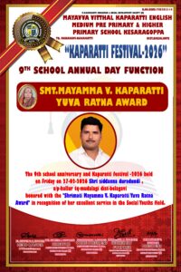 ಕೆಸರಗೋಪ್ಪ ಗ್ರಾಮದ ಶ್ರೀಮತಿ ಮಾಯವ್ವ ವಿಠ್ಠಲ ಕಪರಟ್ಟಿ ಆಂಗ್ಲ ಮಾಧ್ಯಮ ಶಾಲೆಯ 9ನೇ ವಾರ್ಷಿಕ ಸ್ನೇಹ ಸಮ್ಮೇಳನ ಹಾಗೂ ಕಪರಟ್ಟಿ ಫೆಸ್ಟಿವಲ್ 2026 ರ ಕಾರ್ಯಕ್ರಮದಲ್ಲಿ ಯುವ ಸಂಘಟಕ ಸಿದ್ದಣ್ಣ ದುರದುಂಡಿ ಅವರಿಗೆ ಶ್ರೀಮತಿ ಮಾಯವ್ವ ಕಪರಟ್ಟಿ ಯುವರತ್ನ ಪ್ರಶಸ್ತಿಯನ್ನು ಹಂದಿಗುಂದದ ಪೂಜ್ಯಶ್ರೀ ಶ್ರೀಮಂತಸಿದ್ಧ ಶಿವಯೋಗಿಗಳು, ಸಂಸ್ಥೆಯ ಅಧ್ಯಕ್ಷರಾದ ಜ್ಯೋತೆಪ್ಪ ಕಪರಟ್ಟಿ, ಬಾಗಲಕೋಟ್ ವಿಜಯಪುರದ ಕೆಎಂಎಫ್ ಮಾಜಿ ಅಧ್ಯಕ್ಷರಾದ ರಂಗನಗೌಡ ಪಾಟೀಲ ಅವರು ಸಿದ್ದಣ್ಣ ದುರದುಂಡಿ ಅವರಿಗೆ ಯುವರತ್ನ ಪ್ರಶಸ್ತಿ ಪ್ರಧಾನ ಮಾಡಿದರು.