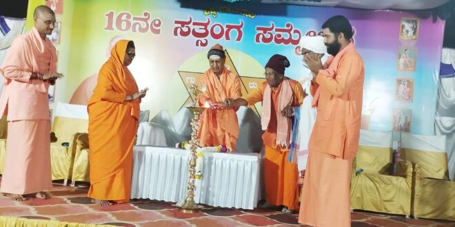 ಪಟ್ಟಣದ ಆರ್.ಡಿ.ಎಸ್. ಕಾಲೇಜು ಆವರಣದಲ್ಲಿ ಕ್ಷೇತ್ರಾಧಿಪತಿ ಶ್ರೀ ಗುರು ರೇವಣಸಿದ್ದೇಶ್ವರ ಕೃಪಾರ್ಶೀವಾದದಿಂದ ಮೂಡಲಗಿ ನಗರದಲ್ಲಿ ವಿಶ್ವಶಾಂತಿಗಾಗಿ “16ನೇ ಸತ್ಸಂಗ ಸಮ್ಮೇಳನ” ದಲ್ಲಿ ಉದ್ಘಾಟನೆ ಮಾಡಿ ಪ್ರವಚನ ನೀಡುತ್ತಾ ಮನುಷ್ಯ ಪರಮಾತ್ಮನಾಗ ಬೇಕಾದರೆ ಪುಣ್ಯವನ್ನು ಮಾಡಬೇಕು. ಪುಣ್ಯದ ಕರ್ಮ ಸನ್ಮಾರ್ಗಕ್ಕೆ ಓಯುತ್ತದೆ. ಮಾತನಾಡುವ ರೀತಿ, ಕಾಯಕದ ಸ್ವಭಾವ, ಕಾಯಕ ನಿಷ್ಠೇ ಅಷ್ಟೇ ಅಲ್ಲದೇ ಮನುಷ್ಯನ ಜೀವನಕ್ಕೆ ಅದರದೇ ಆದ ನಿಯಮಗಳಿದ್ದು ನಿಯಮ ಪಾಲನೆ ಮನುಷ್ಯನಿಗೆ ಹೊರತು ಪ್ರಾಣಿಗಳಿಗೆ ಅಲ್ಲ ಪ್ರಾಣಿ ಆಗದೇ ಮನುಷ್ಯನಾಗಬೇಕು ಅಂದರೆ ಪುಣ್ಯವನ್ನೆ ಮಾಡಬೇಕು. ಹಣ, ಆಸ್ತಿ, ವಸ್ತುಗಳ ಪ್ರಾಪ್ತಿ ಮಾಡಿಕೊಂಡರೆ ಪುಣ್ಯವಲ್ಲ. ಮನುಷ್ಯನಾಗಿ ಪುಣ್ಯವನ್ನು ಮಾಡಿದರೆ ಪರಮಾತ್ಮನಾಗಲು ಸಾಧ್ಯವಿದೆ ಎಂದು ಪ್ರವಚನ ನೀಡಿದರು.